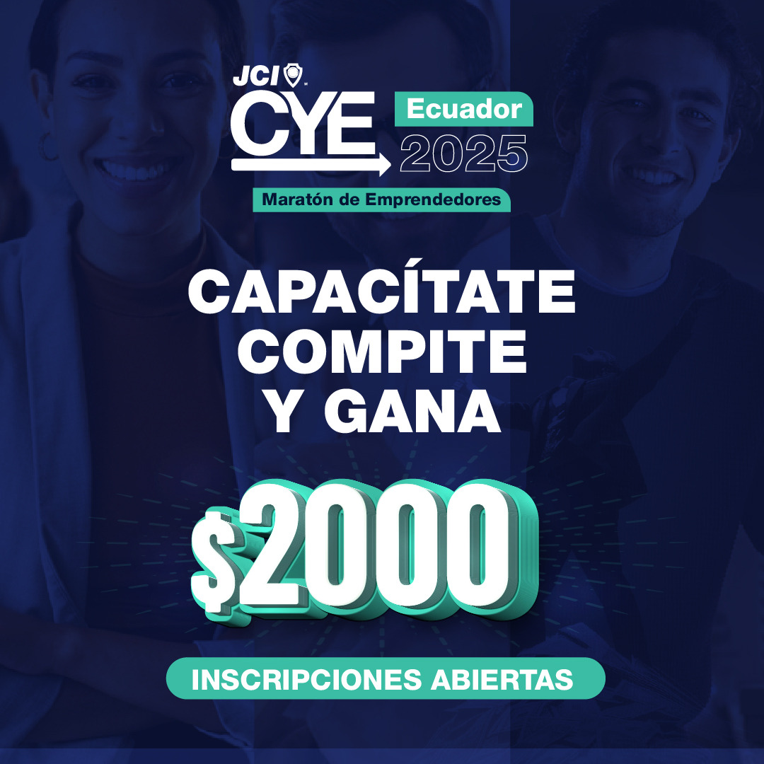 El Creative Young Entrepreneur (CYE) es un programa global de JCI que impulsa a jóvenes emprendedores a fortalecer su modelo de negocio y competir presentando su pitch ante expertos. En Ecuador, lo lidera JCI Ecuador junto a aliados académicos y empresariales.